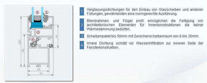 Das Fenster-System MB-45, das sogenannte kalte System, dient zur Herstellung der Innen- und Außenelemente, die keiner Wärmedämmung bedürfen.